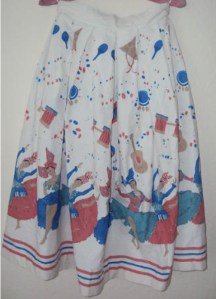 I have a real thing for mexican circle skirts, there is something so great about the prints used on them, especially the hand painted 1950’s one. Much more like a piece of textile art rather than a simple garment. The really heavy weight cotton ones with the printed traditional scenes are my absolute favourites. This little number has more of a spanish feel to it. Perfect for a fiesta with its lovely dancing ladies. It was one of my many recent ebay purchases £20. Very reasonable!