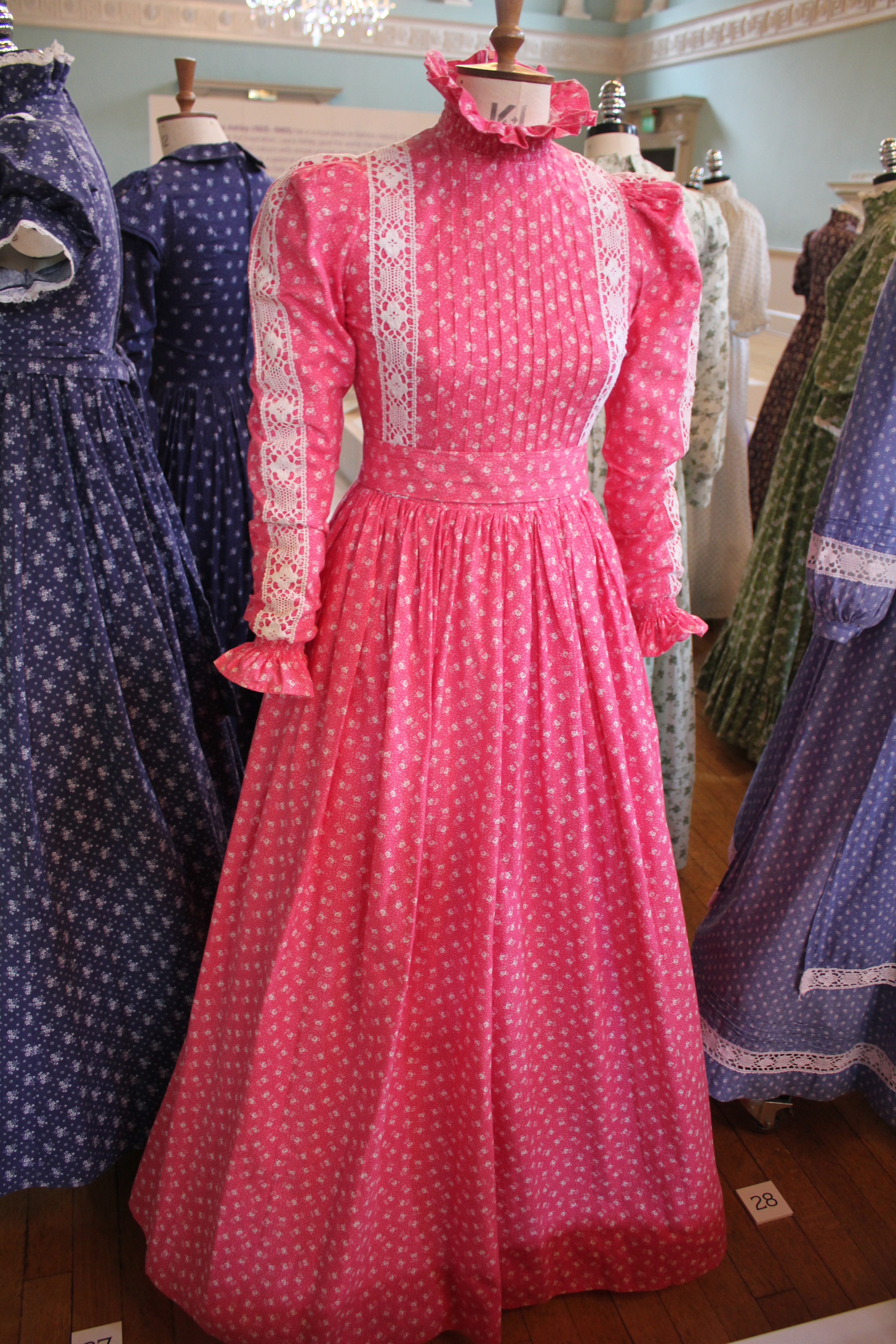 Criticism? A few minor niggles really. I would have like to have seen more than just dresses in the exhibition, I feel that there was not enough about Laura’s design process (sketches and fabric swatch books as seen at the archive mini exhibition would have been great). One of my other favourites is the matching mother and daughter outfits, which there was not one of in the exhibition. The few children’s dresses were not matching to adult ones at all. Also, I fully understand that the scope of the exhibition was just to concentrate on a brief period of the Laura Ashley story, but unless you are a fashion history nut like me I’m not sure how interesting it would be to see 90+ very similar dresses. But overall these critiscims are only slight and I passed a delightful two hours looking around, I also had a great chat with the FOH. Top marks Bath Fashion museum for your friendly staff (even if I did have to pay despite having ICOM membership!)